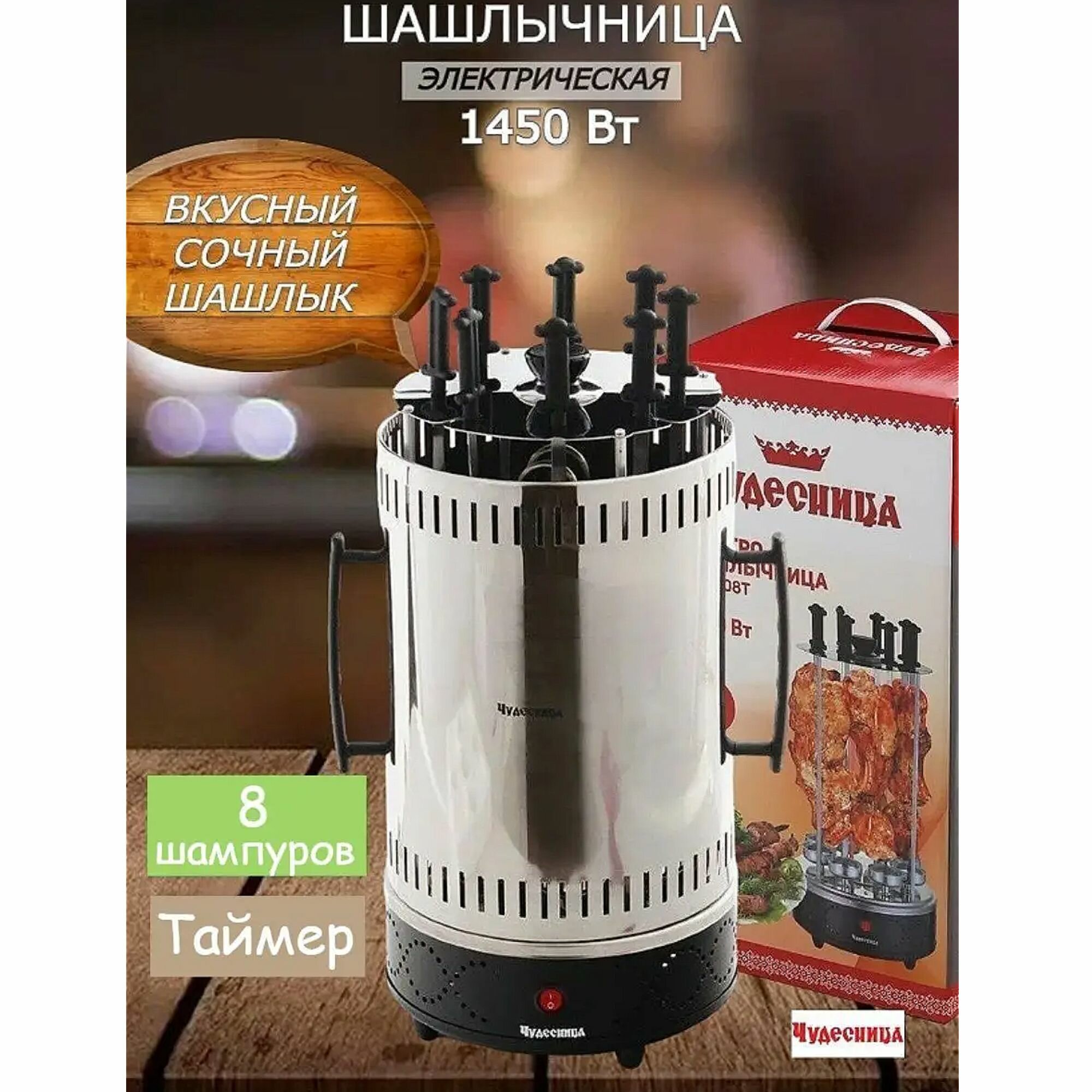 Чудесница Электрошашлычница "Чудесница" 1008Т, 1450 Вт, 8 шампуров, серебристая