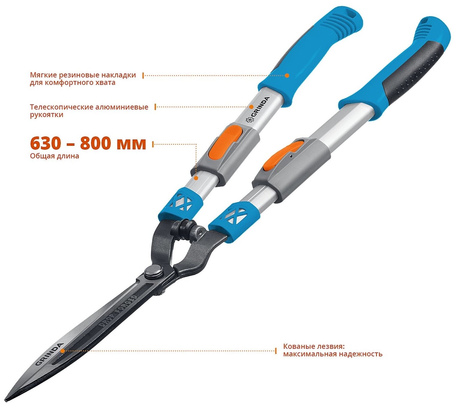 Grinda FH-800T кусторез с коваными лезвиями, телескопический, с алюминиевыми рукоятками, 630-800мм, 423790