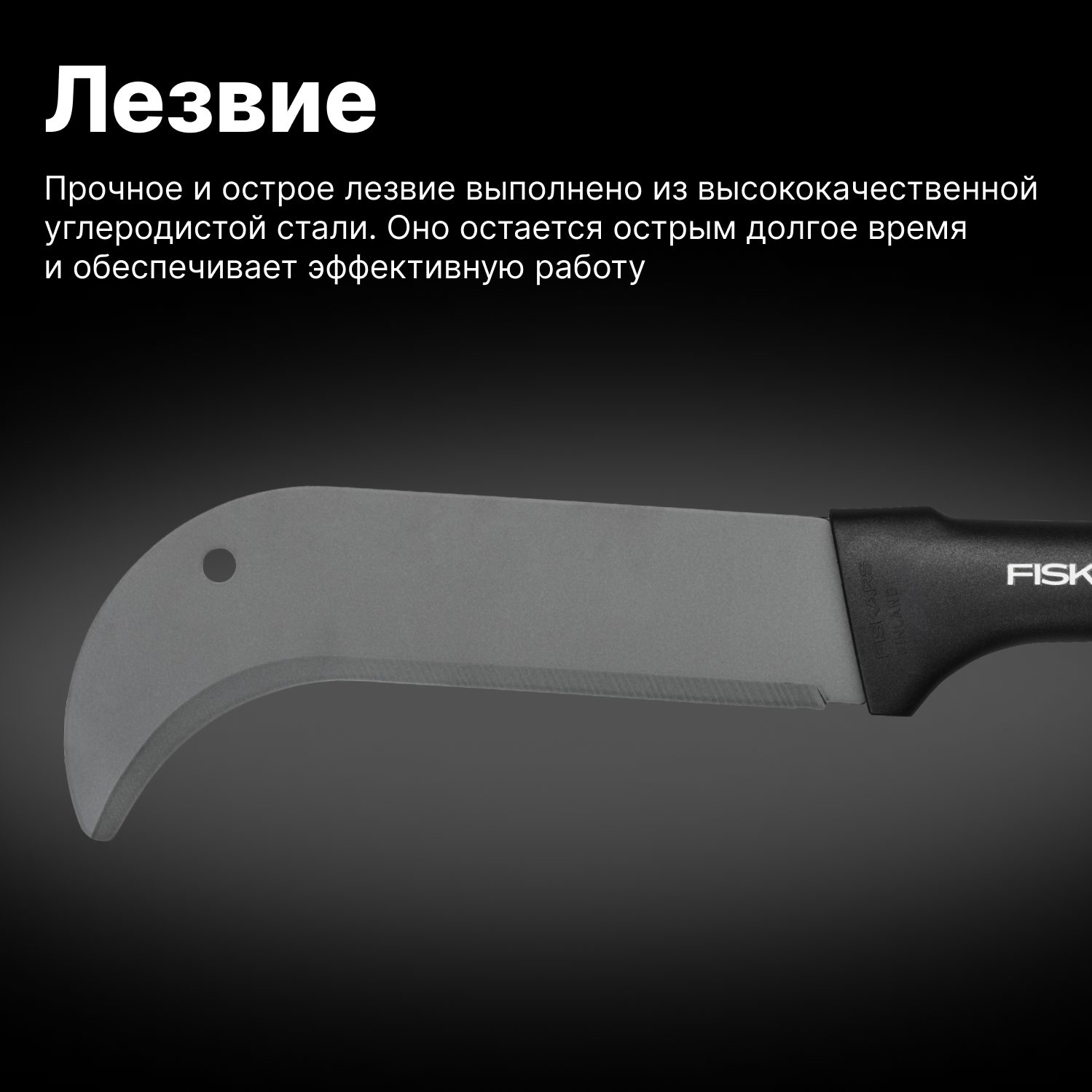 За счёт формы лезвия хорошо обрубать ветки, в том числе и заросли. Шершавая рукоять, не скользит, но и не противный липкий софт тач! |