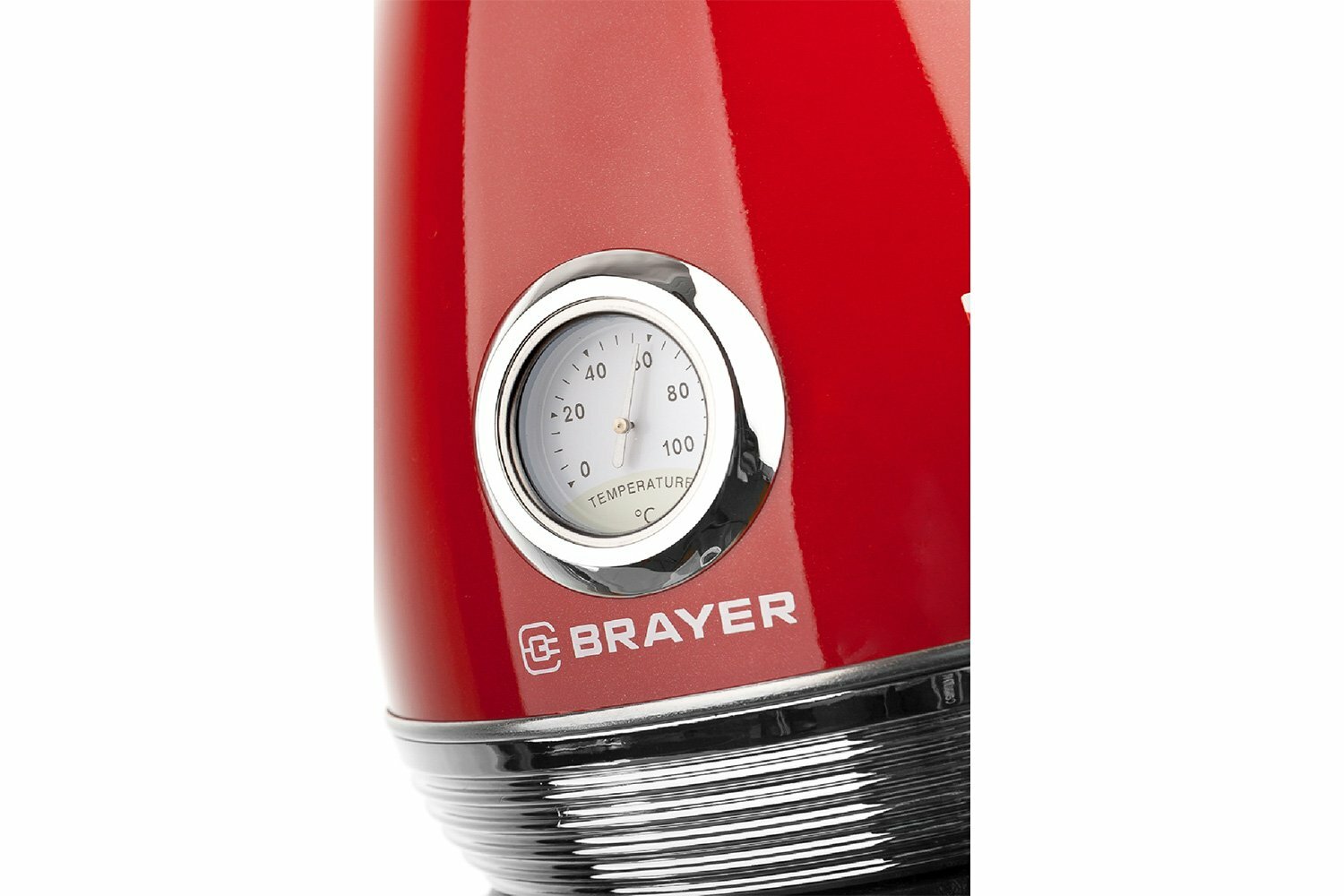Чайник с термометром BRAYER BR1007RD, 1.7 л, 2200 Вт, закрытый нагревательный элемент, сталь, красный