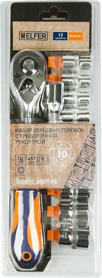 Купить HELFER HF003101 Набор торцевых головок 1/2"Dr с трещоточной рукояткой, 12 предметов HELFER