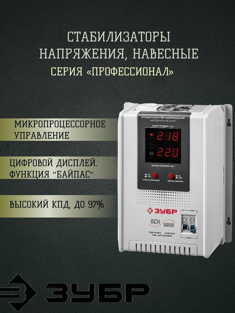 ЗУБР АСН 5000 профессиональный стабилизатор напряжения навесной 5000 ВА, 140-260 В, 8%, 59385-5