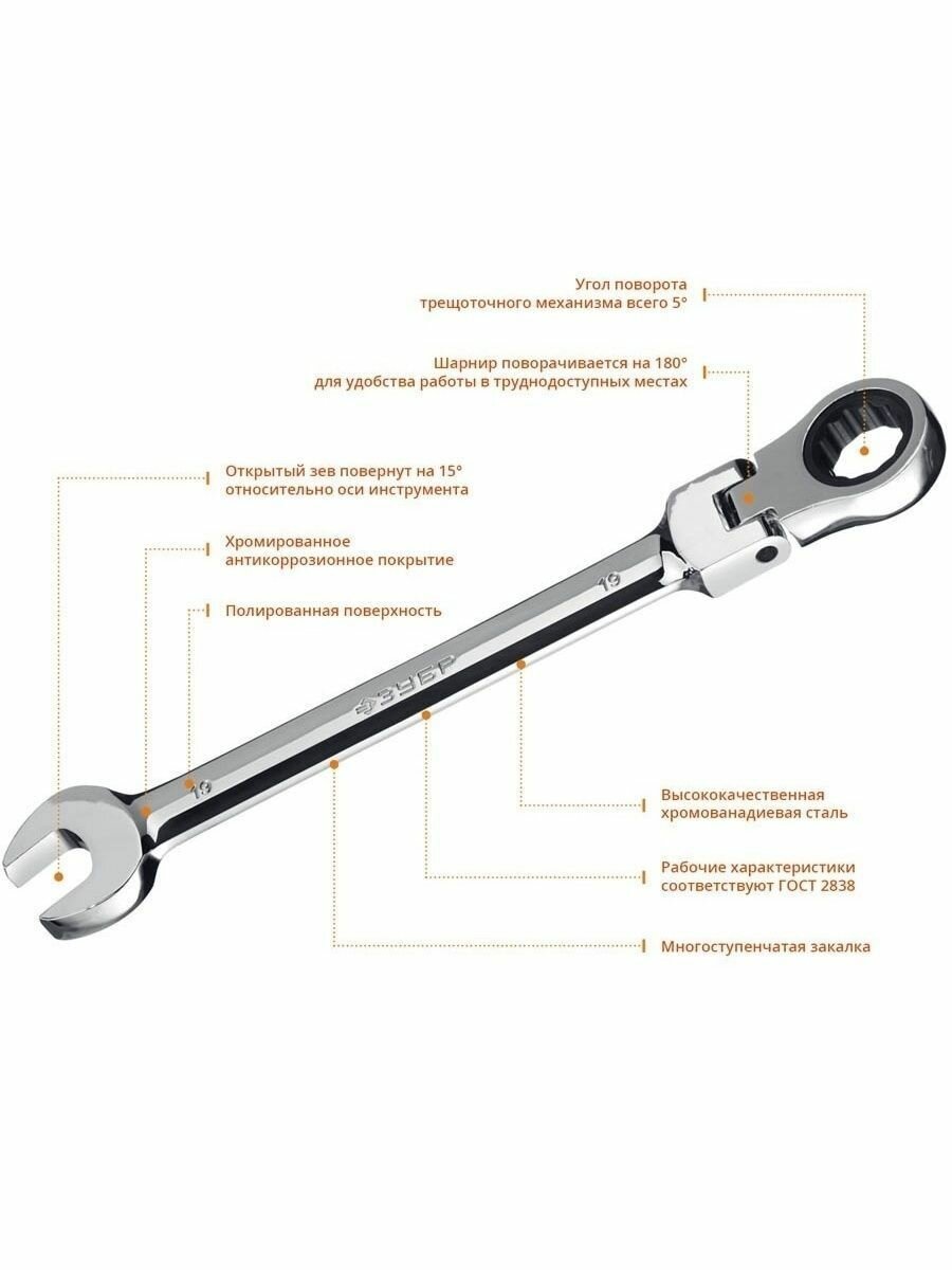ЗУБР Набор комбинированных гаечных ключей трещоточных шарнирных ., 8 - 19 мм, ЗУБР