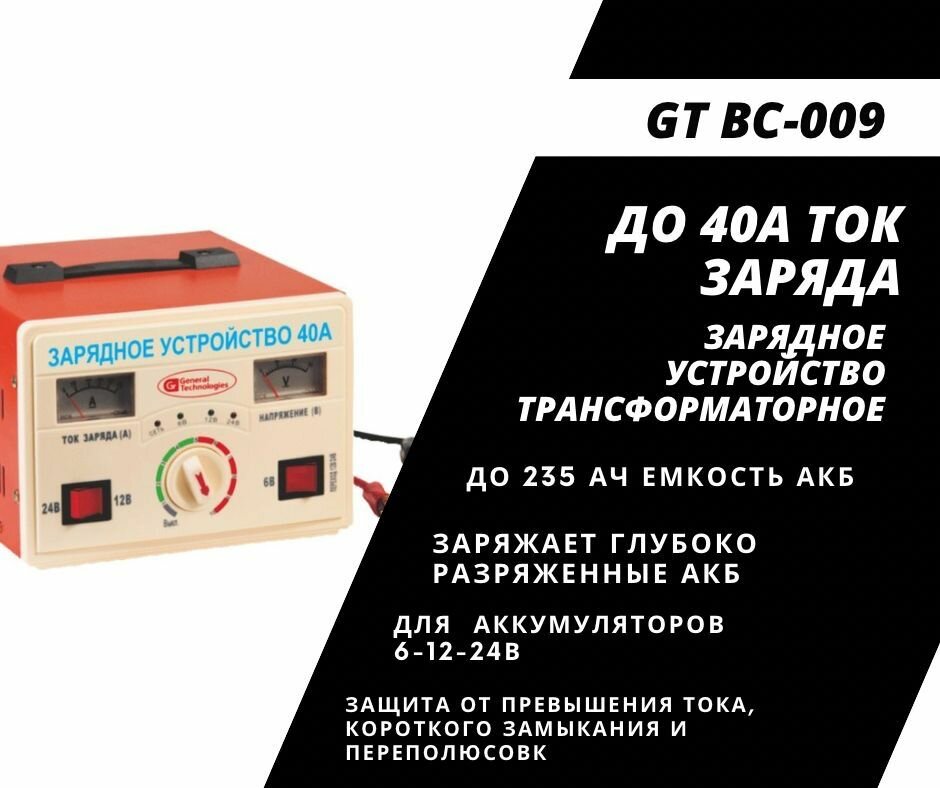 Зарядное устройство для аккумуляторов автомобиля General Technologies GT-BC009 трансформаторное интересное: