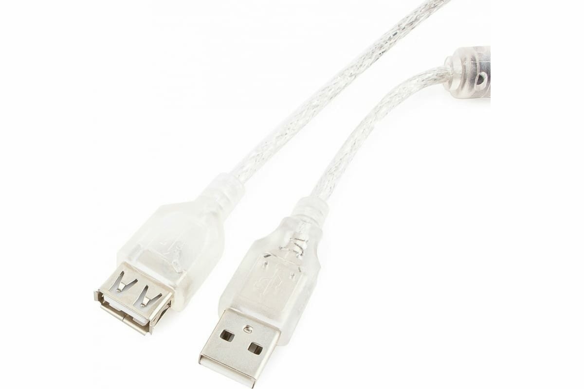 Купить Cablexpert Кабель удлинитель USB2.0 Pro, AM/AF, 1,8м, экран, 2 феррит.кольца, прозрачный (CCF-USB2-AMAF-TR-6)