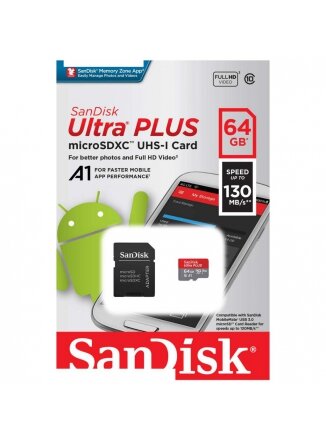 Карта памяти 64Gb MicroSD SanDisk Ultra + SD адаптер (SDSQUNR-064G-GN3MA)
