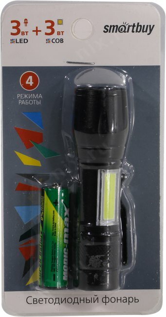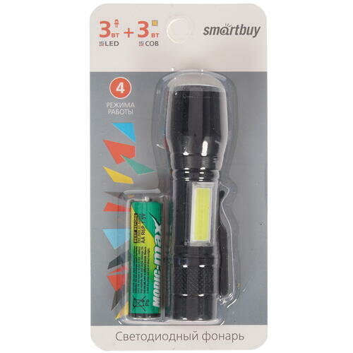 Smartbuy фонарь ручной SBF-104 3W LED+3 Вт COB, AA, черный (SBF-104)