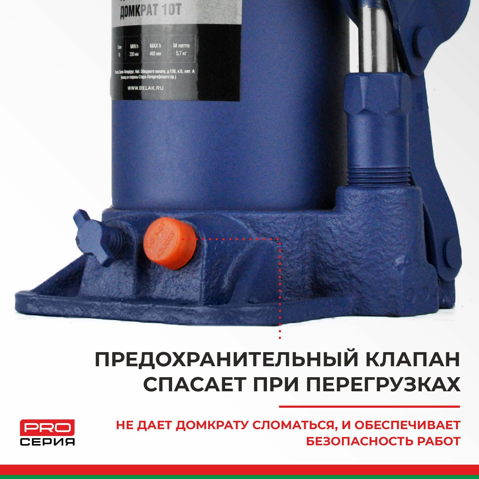 Белавтокомплект BAK.30016 Домкрат 10 тонн PREMIUM "BELAK" (TUV, 2 клапана, 230мм-460мм)