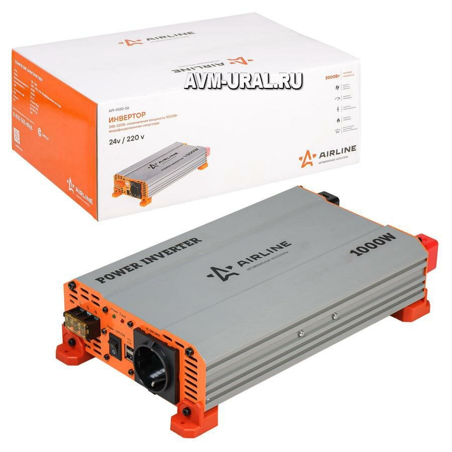 Инвертор 24В-220В, 1000 Вт Airline API-1000-06 .