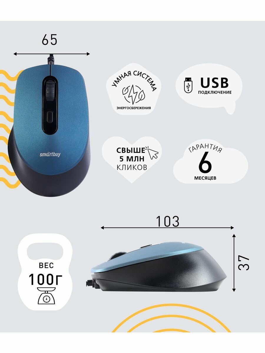Мышь проводная оптическая беззвучная Smartbuy ONE 265-B синяя (SBM-265-B)
