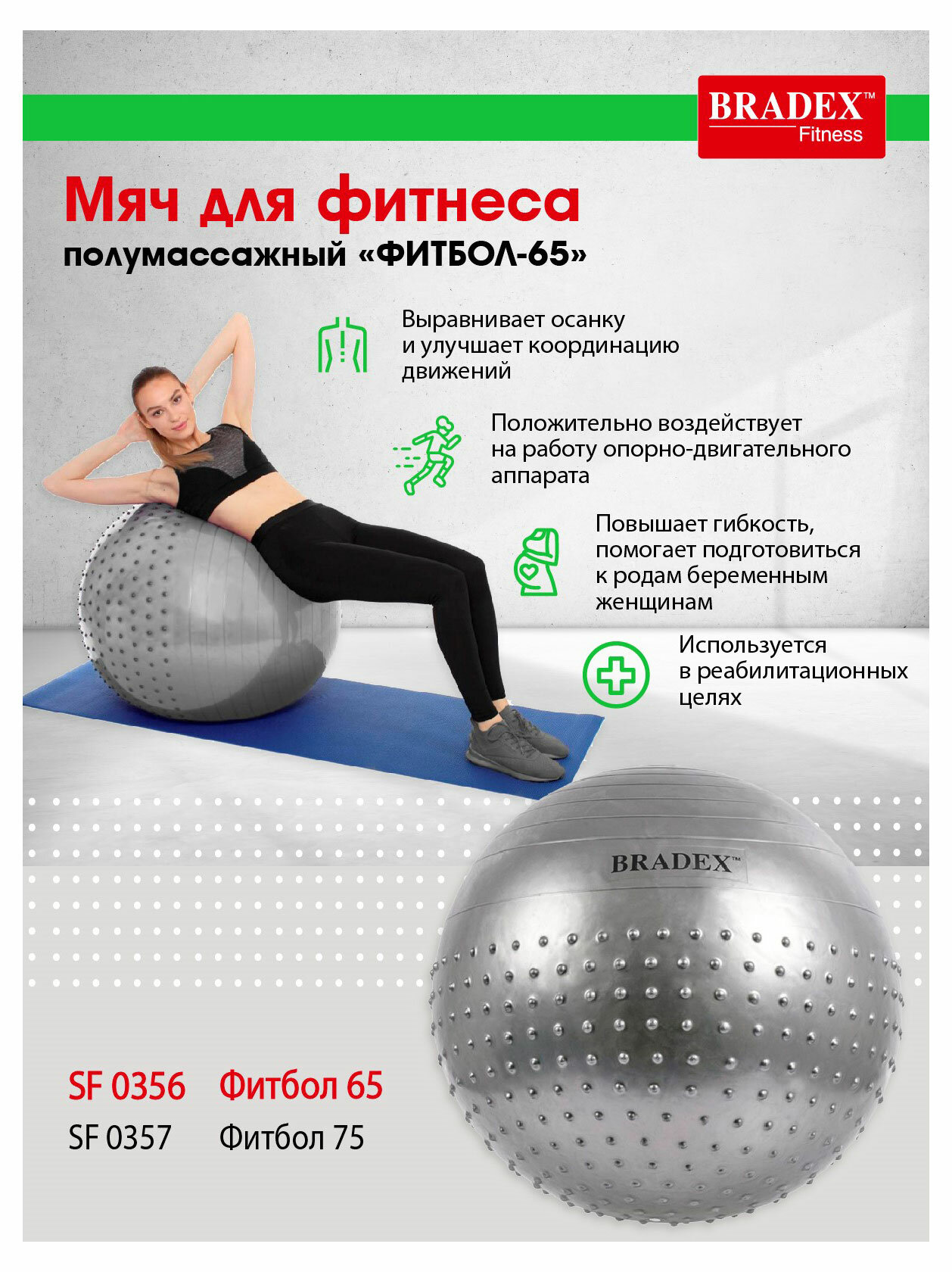 BRADEX Мяч для фитнеса, полумассажный «ФИТБОЛ-65», BRADEX