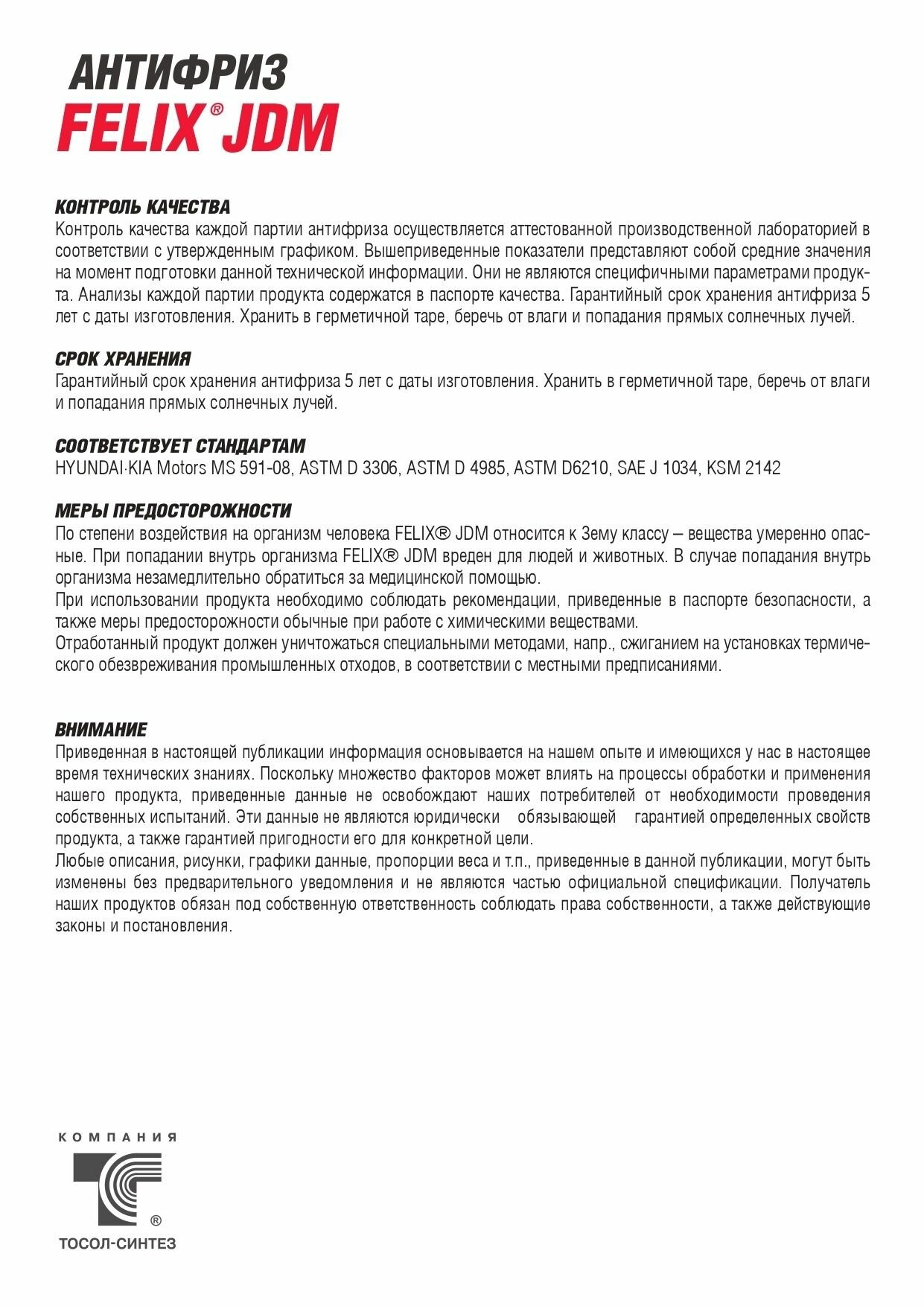 | Плюсы: | меня устраивает цена и качество антифриза FELIX JDM |
