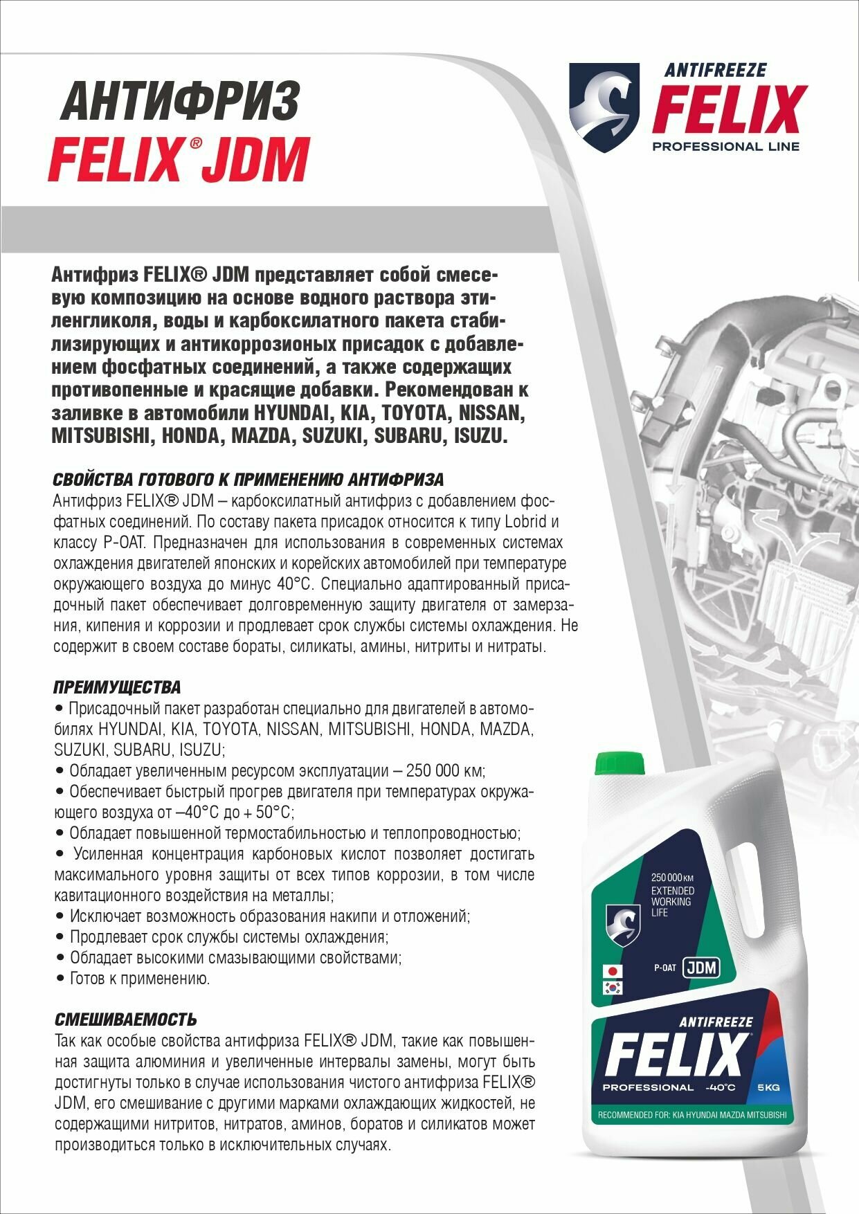 Антифриз Felix Jdm, В П/Э Кан. 5кг. Felix арт. 430206331