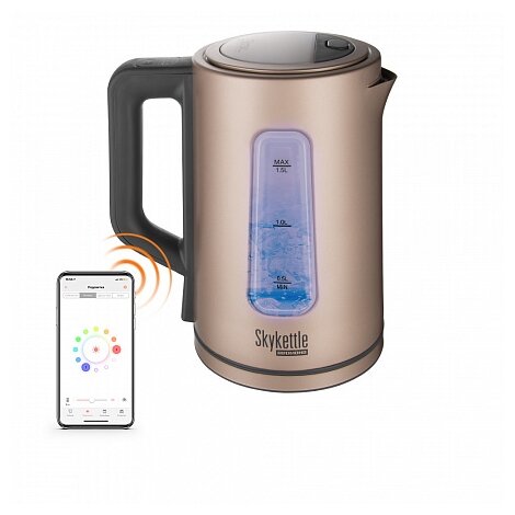 Эта модель чайника хороша собой со всех сторон. При выборе однозначно искала стальной чайник, но в основном не нравилось, что выглядят они грубо и плохо виден уровень воды. С этим чайником всё как надо. У него красивый, золотистый цвет, и в корпусе есть широкое окно с мерной шкалой. Поэтому он смотрится более облегчено, чем серая сталь, да и остаток воды можно увидеть издалека и своевременно добавить её. Большой плюс в чайнике и то, что можно выбрать температуру: один из четырёх режимов кнопкой, либо в приложении с точностью до одного градуса. Помимо этого можно и включить чайник удаленно, будь то из соседней комнаты, или по пути домой. Сам чайник работает исправно, нареканий нет никаких. Воду кипятит быстро, сам отключается, есть звуковой сигнал.