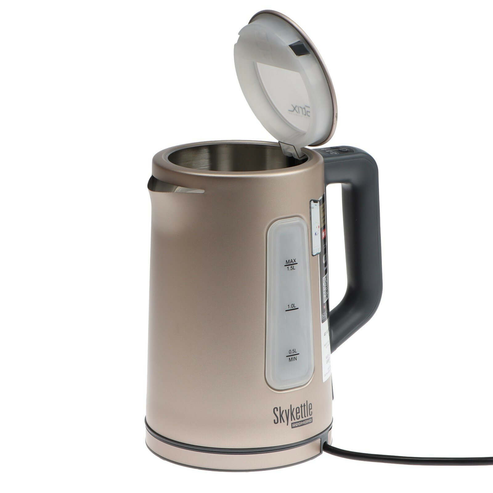 Необычный дизайн, умный, 1.5 литра, мощность 1850-2200 Вт, корпус из экологичной стали с окошком.