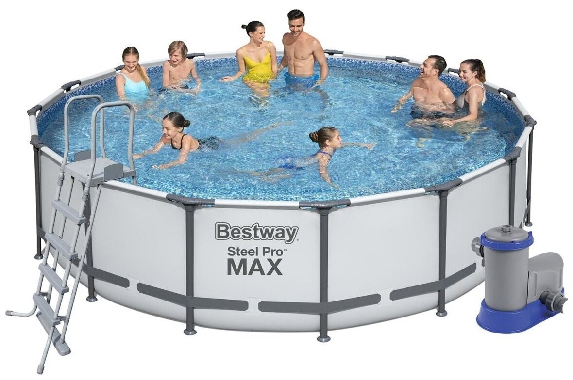 Бассейн каркасный круглый с фильтр-насосом Bestway 5612Z Steel Pro Max 488x122 см 19480л / Бассейн бествей семейный для дачи с жестким бортом