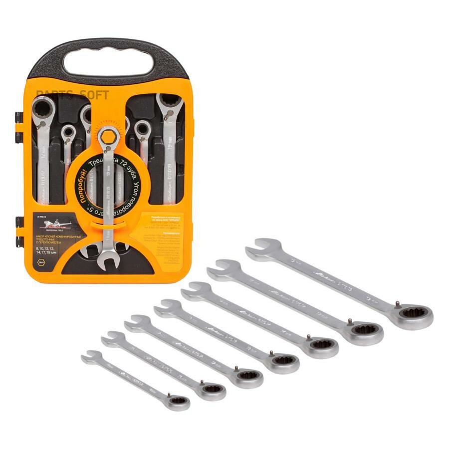 Набор ключей комбинированных трещоточных с переключателем 7 предметов (8,10,12,13,14,17,19мм) пласт. пенал (AT-RRS-16)