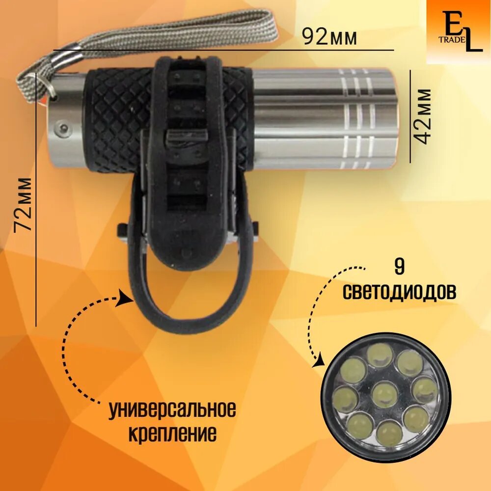 Купить Фонарь светодиодный "Велосипедный 2" с креплением, 9 LED, 30 лм/Вт, 3*AAA TDM