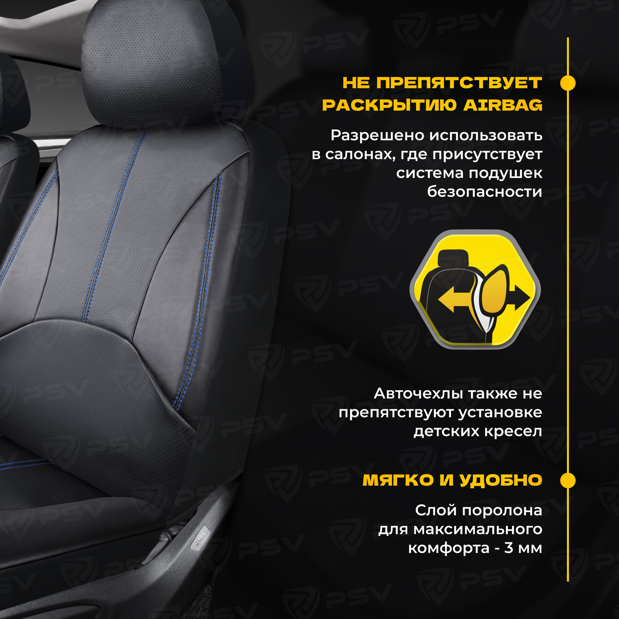 СохранитьЧехлы PSV Imperial Next 2 FRONT (Черный/отстрочка синяя), экокожа интересное: