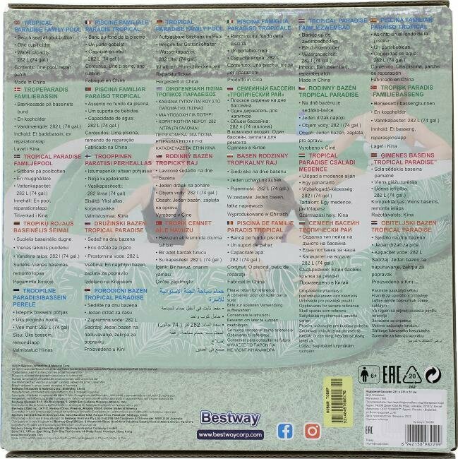 СохранитьБассейн детский надувной тропический РАЙ 231 см х 231 см х 51 см 282 л от 6 лет BESTWAY 54336 интересное: