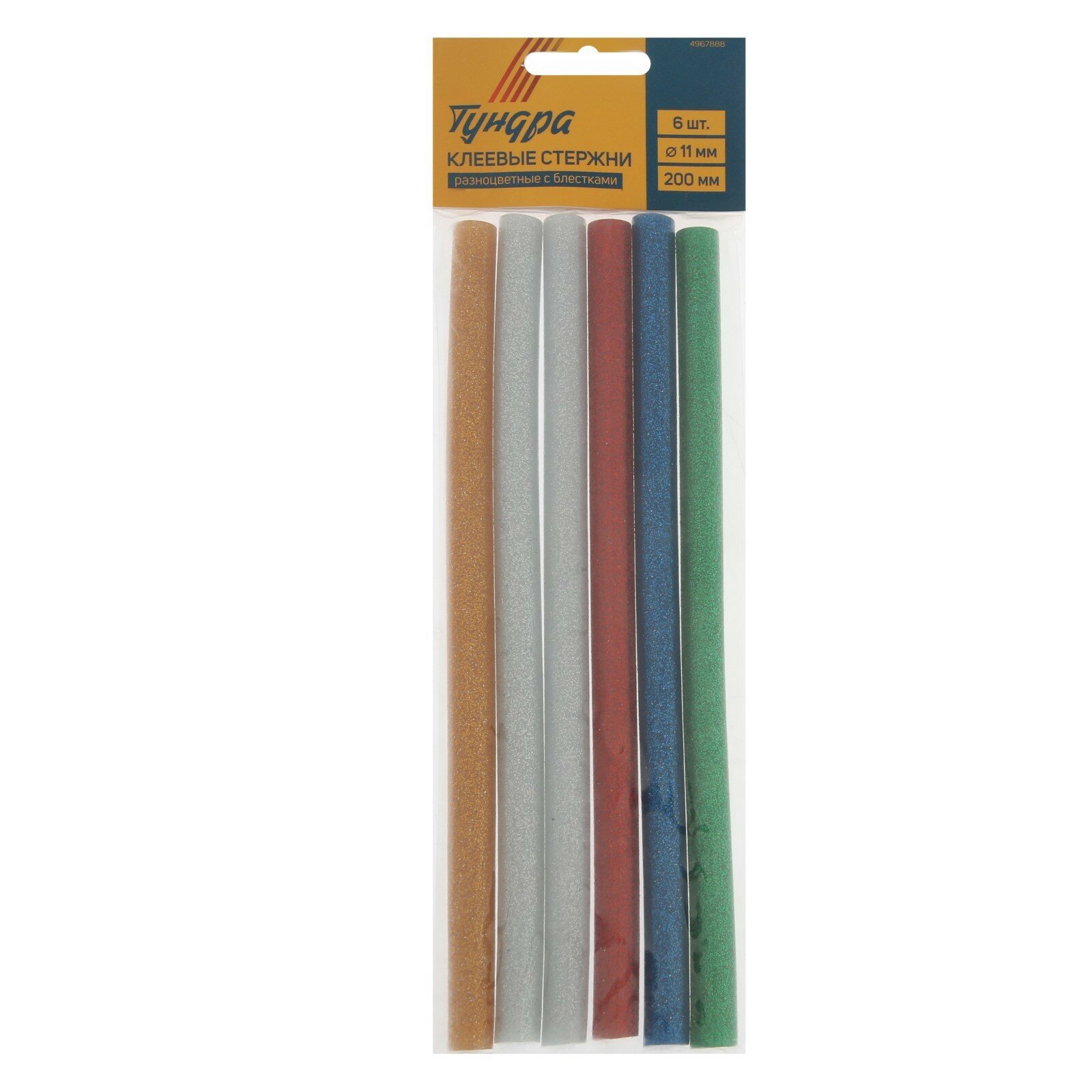 Клеевые стержни тундра, 11 х 200 мм, разноцветные с блестками, 6 шт. 4967888