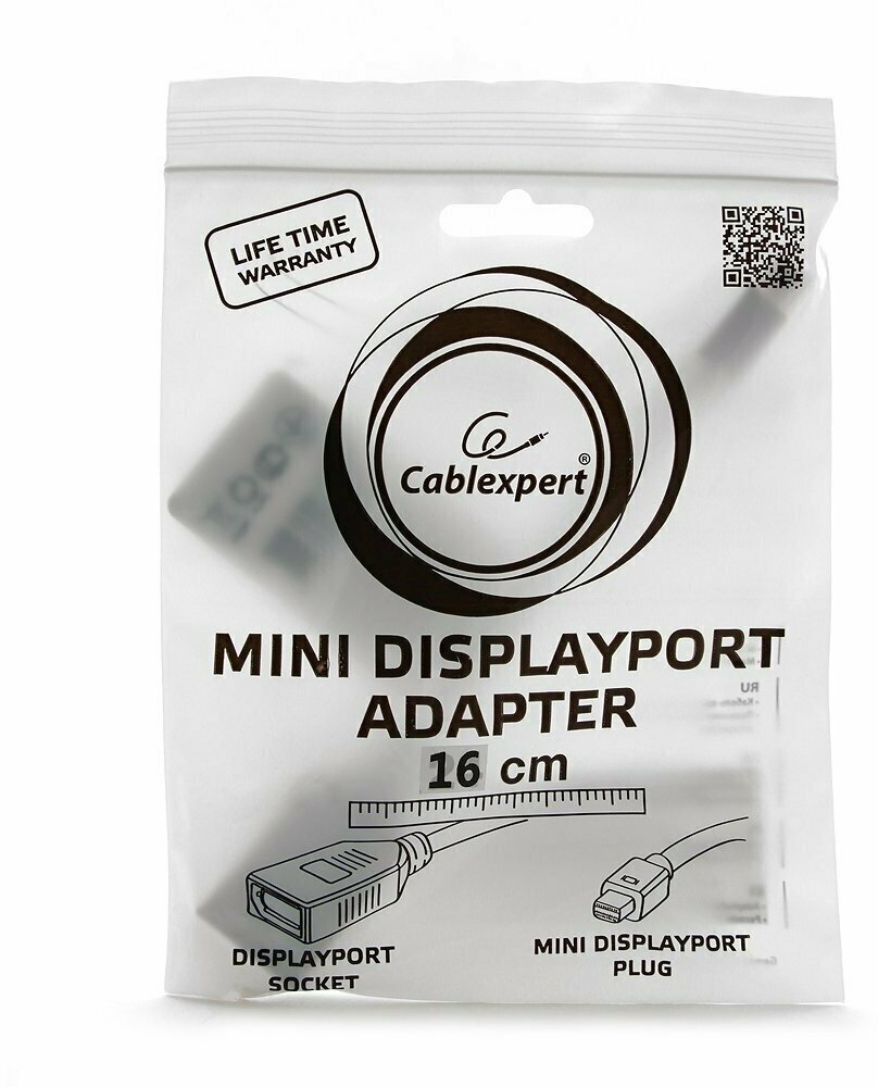 Переходник miniDisplayPort - DisplayPort, Cablexpert A-mDPM-DPF-001, 20M/20F, длина 16см, черный, па .