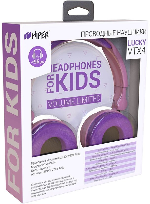 Наушники HIPER детские LUCKY Pink, розовые-сиреневые (HTW-VTX4) интересное: