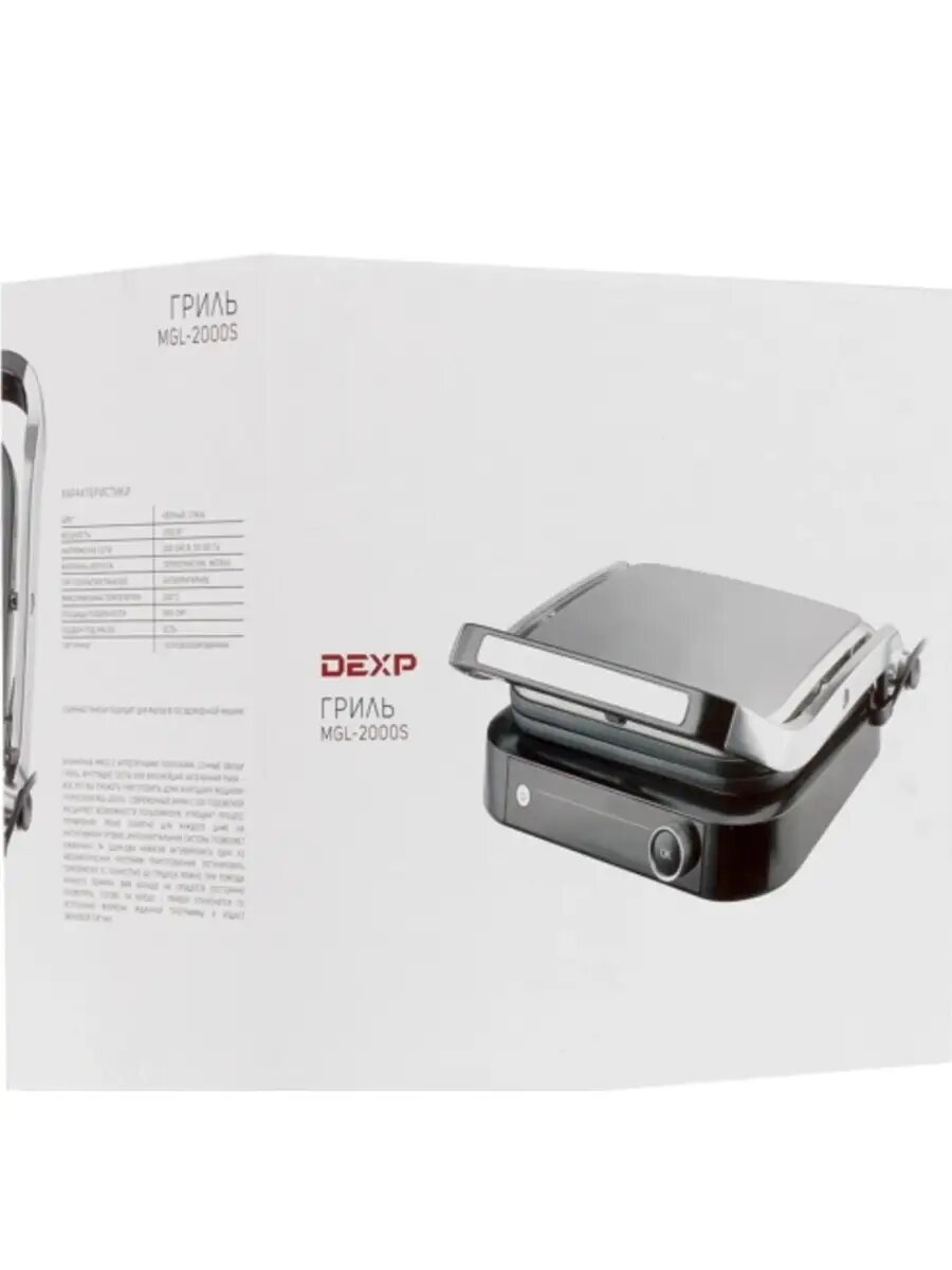 Гриль электрический, гриль dexp mgl-2000s, серебристый