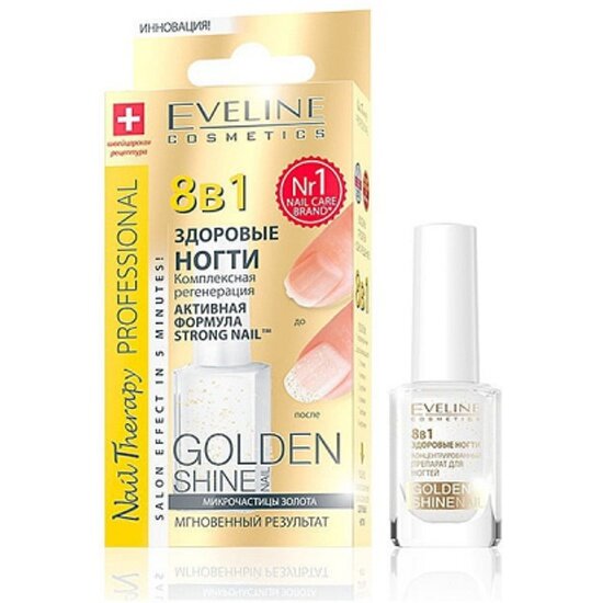 Eveline Cosmetics Здоровые ногти 8 в 1 Высокоэффективный Препарат для Регенерации и Укрепления ногтевой пластины с золотом, 12мл