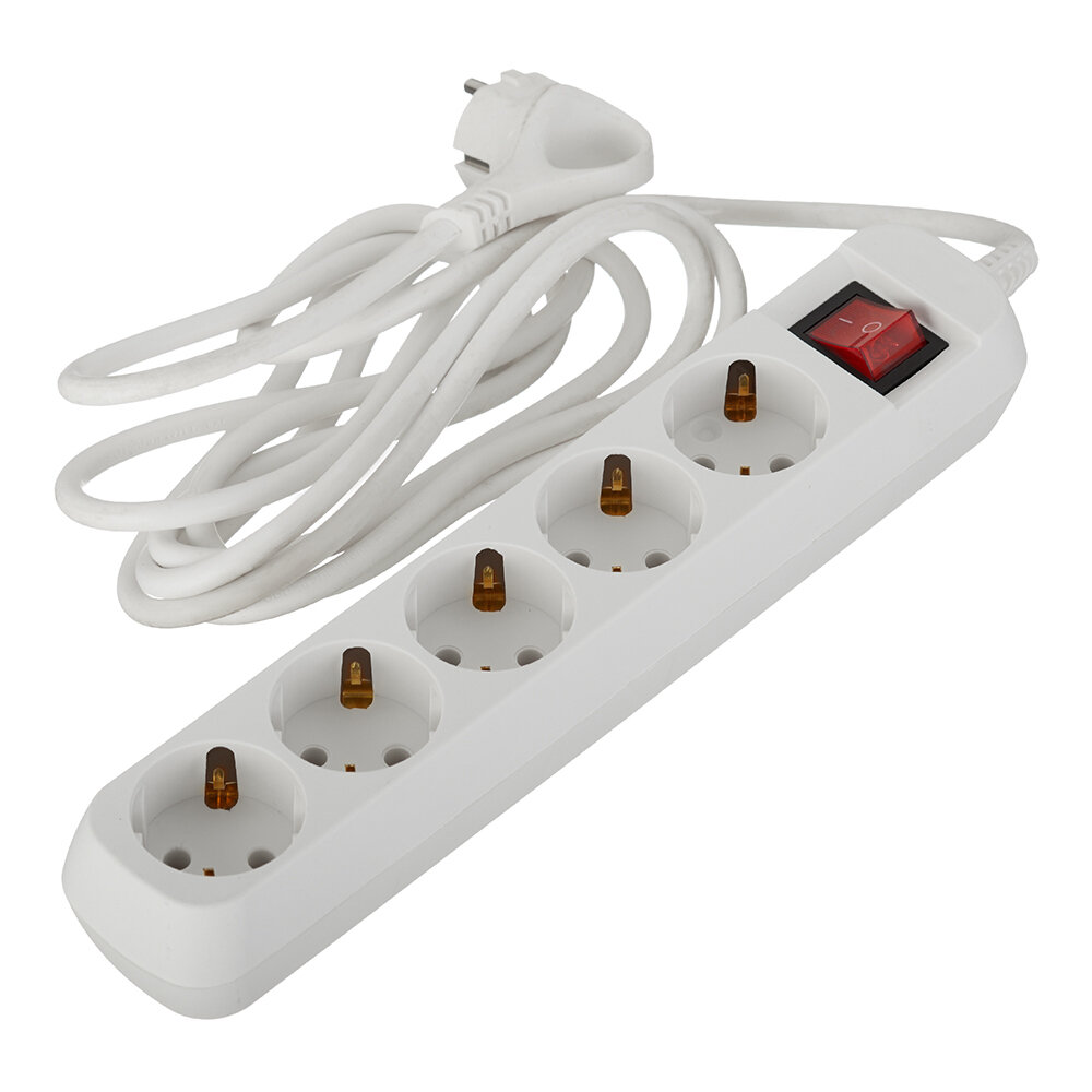 Удлинитель электрический ЭРА UX-5es-3m с заземлением с выключателем 5 розеток 3 м ПВС 3x0,75мм2 10А