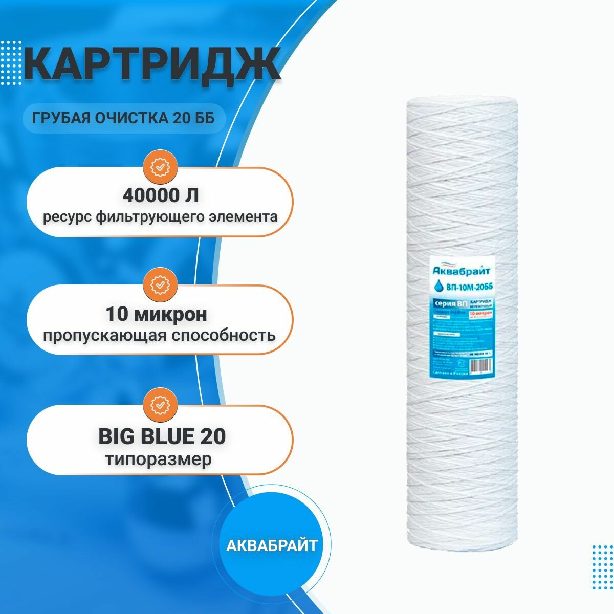 Аквабрайт картридж для механической очистки ВП-10М-20ББ, 1 шт.