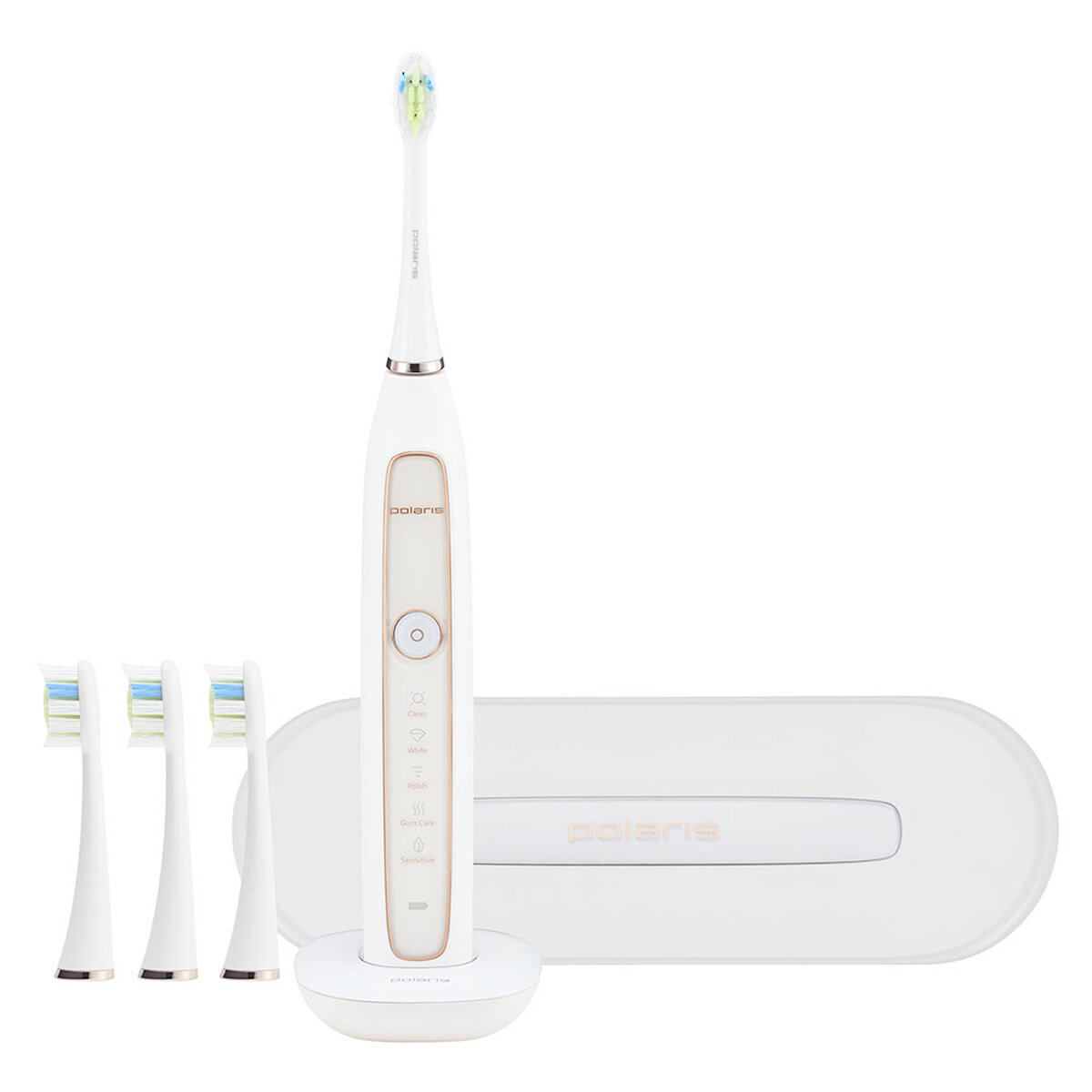 Электрическая зубная щетка Polaris PETB 0101 TC для бережной чистки, 3 насадки, белый