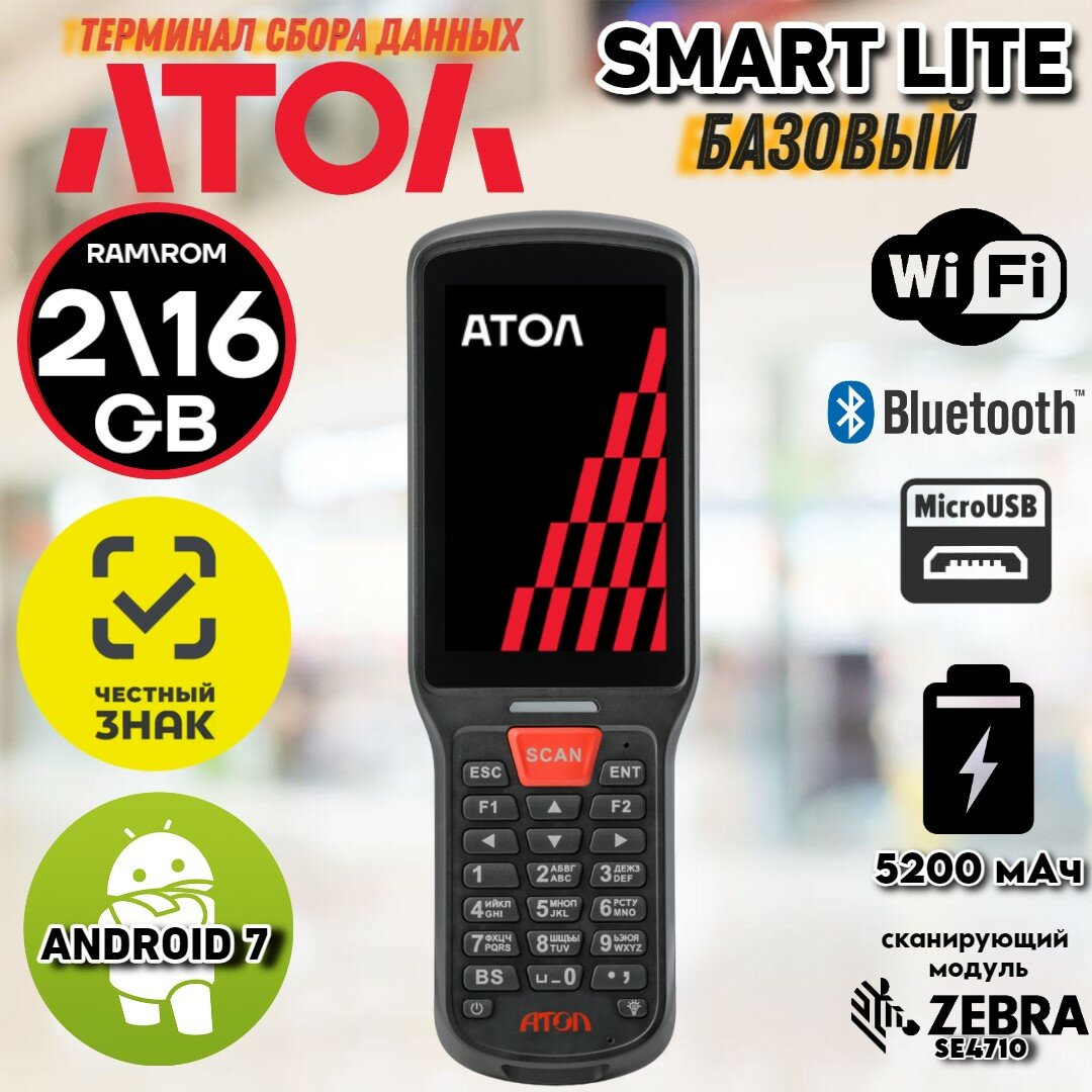 Терминал сбора данных АТОЛ SMART.Lite ( Wi-Fi, Bluetooh , Zebra SE4710, 2/16Гб) Базовая версия