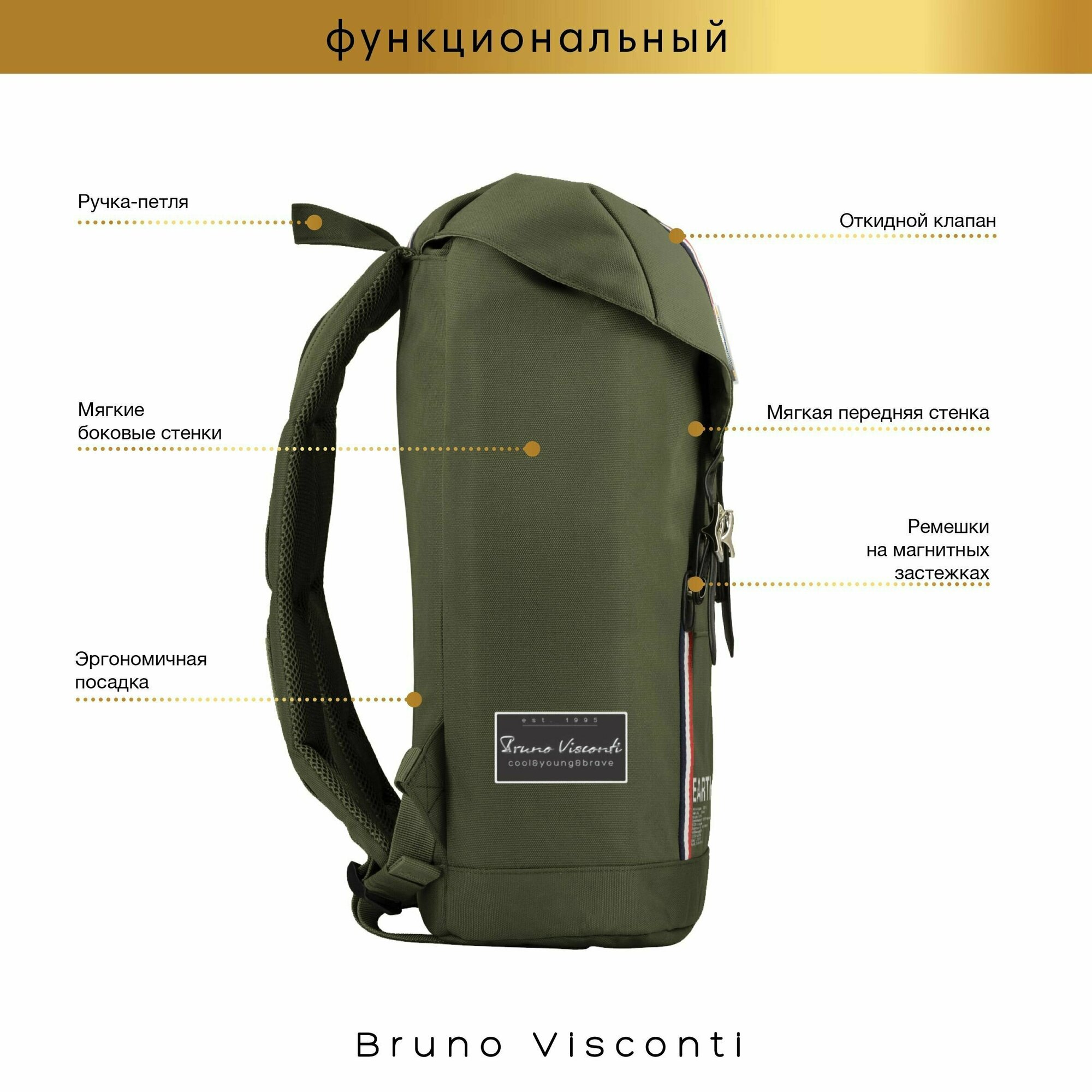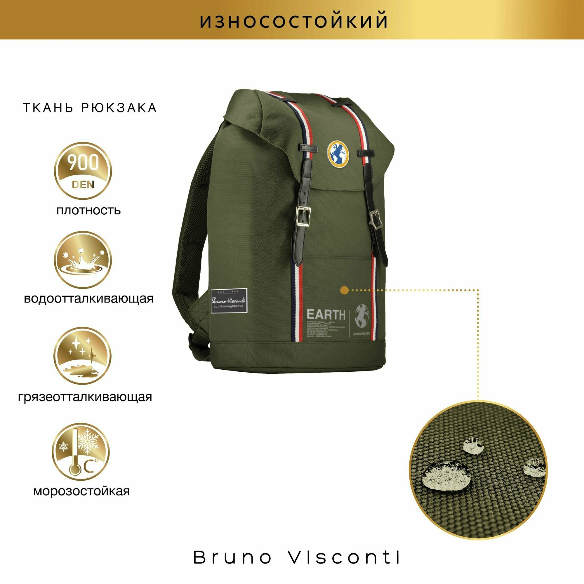 Рюкзак BrunoVisconti, городской, темно-зеленый , «планета земля», Арт. 12-011-001/11