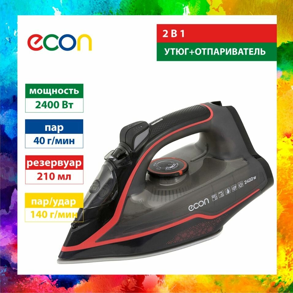 Утюг Econ, ECO-BI2405, 2400 Вт, керамика, черный,красный