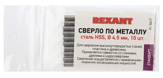 Сверло по металлу (10 шт; 4.5 мм; HSS) REXANT 91-0617