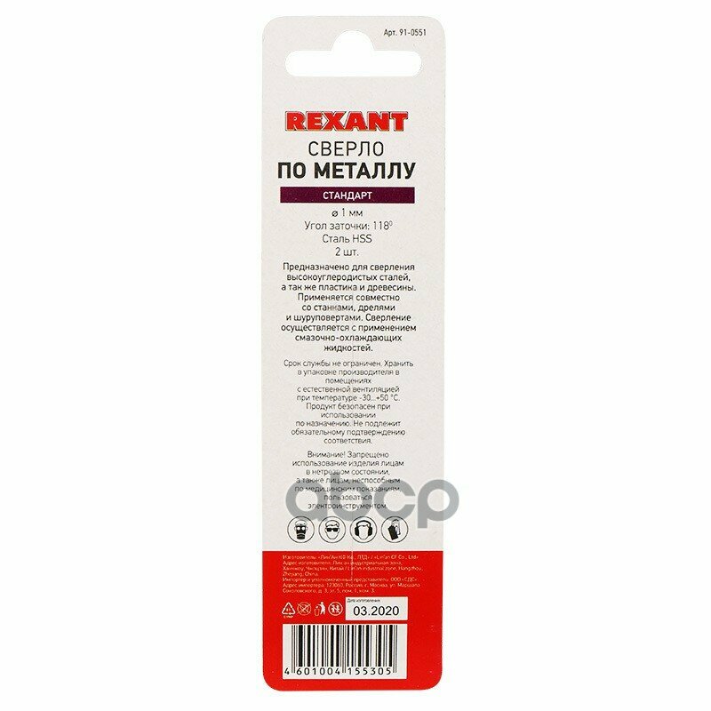 Сверло По Металлу 1,0мм Rexant Hss Комплект 2шт REXANT арт. 910551