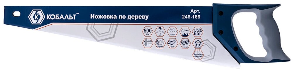 Ножовка по дереву кобальт 500 мм, шаг 3,5 мм/ 7 TPI, тефлоновое покрытие закаленный зуб, 3 (246-166)