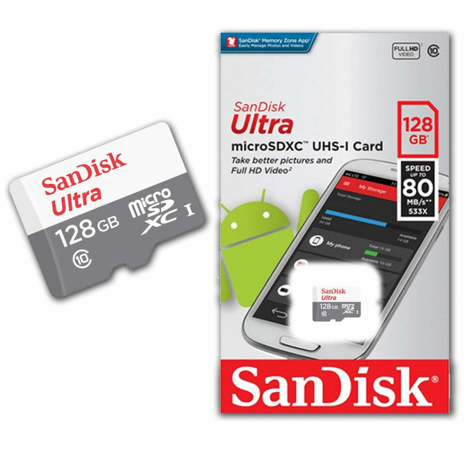 Карта памяти microSD 128 ГБ SanDisk Class 10 Ultra