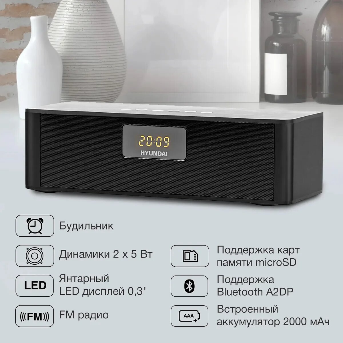 Радиобудильник HYUNDAI H-RCL340, черный интересное: