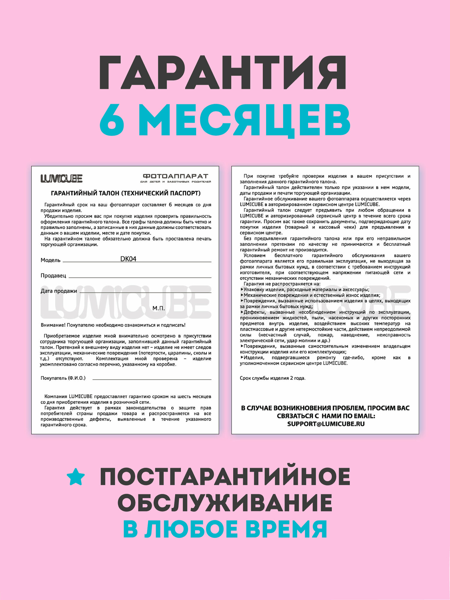 Фотоаппарат моментальной печати LUMICUBE DK04, печать снимка 50x100 мм, pink