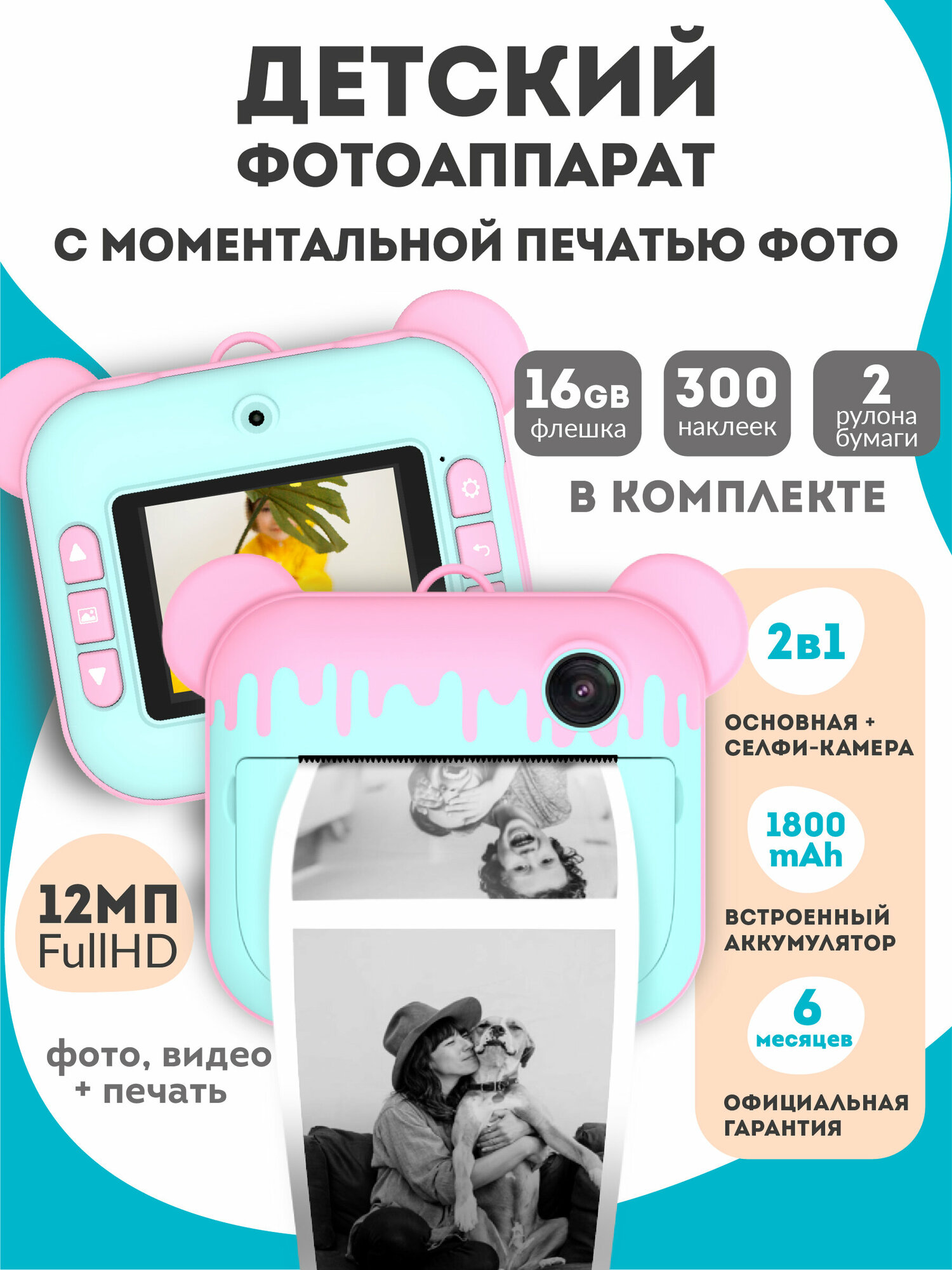 | Отзыв: | Очень интересное решение с моментальной печатью на термобумаге. Выбирал между полароидом или вроде того, но тут больше плюсов оказалось. По ощущениям ребёнок даже спустя год периодически берётся и ходит фоткает. Можно фотографировать на карту, а потом купить рулон и распечатать нужные кадры |