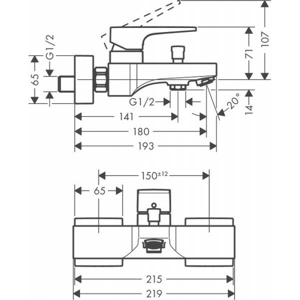HG Metropol смеситель д/ванны однор.,ВМ