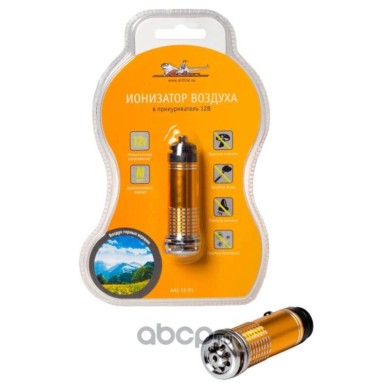 Ионизатор - освежитель воздуха в прикуриватель Airline оранжевый AIRLINE AAI1201 | цена за 1 шт