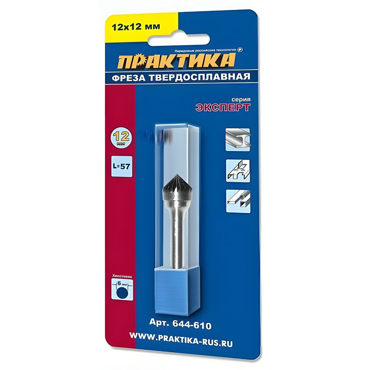 Борфреза по металлу твердосплавная тип J зенкер 60 град, 12 х 12 мм, хвостовик 6 мм ПРАКТИКА 644-610