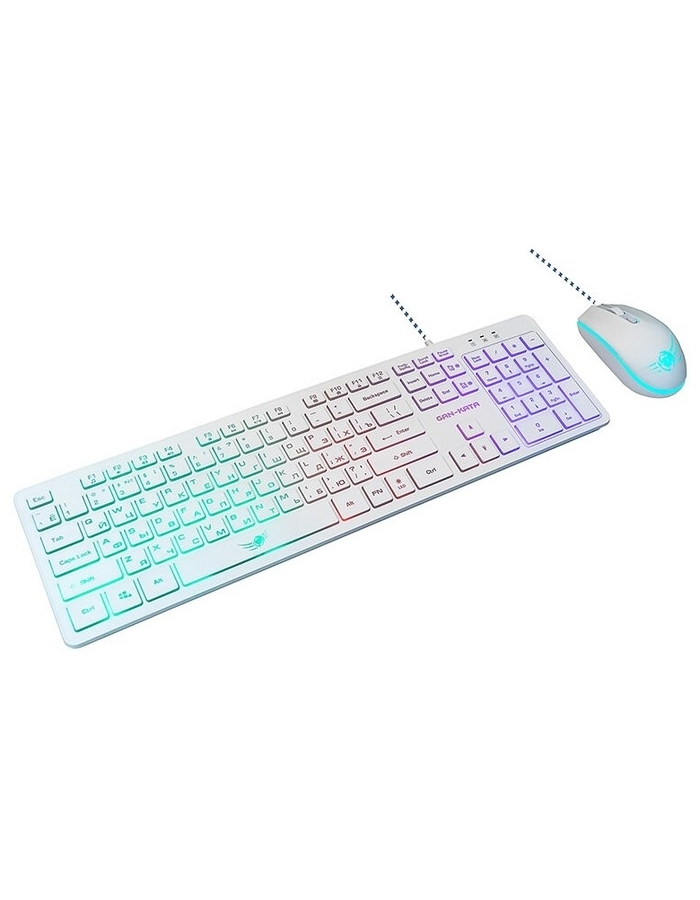 Dialog Клавиатура Проводной игровой набор KMGK-1707U WHITE Gan-Kata - клавиатура + опт. мышь с RGB подсветкой