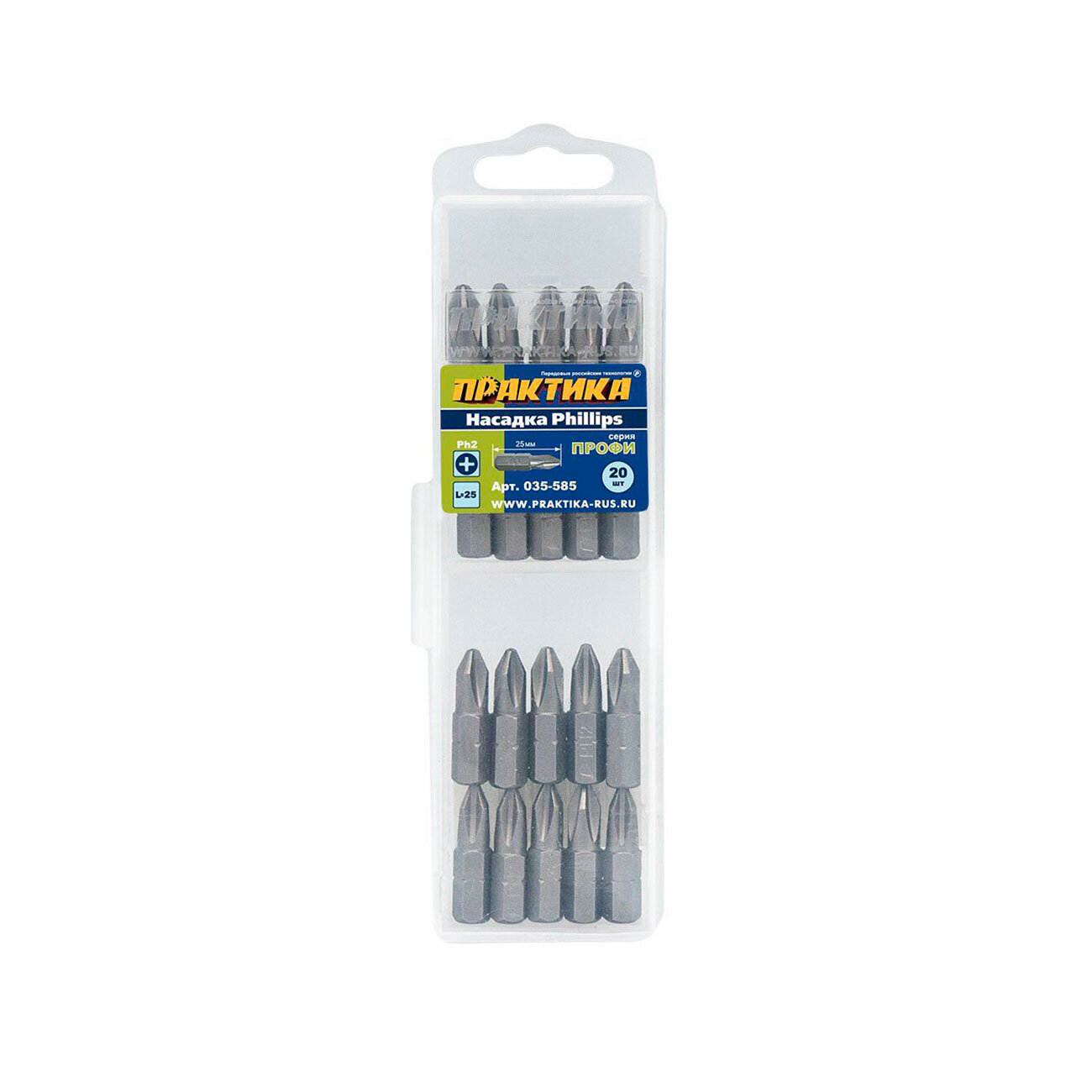 Бита "Профи" PH-2 х 25мм (20шт), кассета ПРАКТИКА 035-585