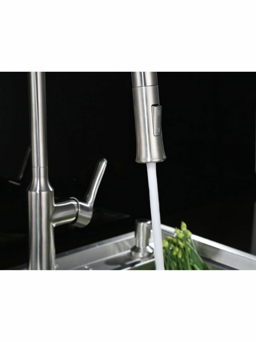 Смеситель для кухни BelBagno BB-LAM38-IN Смеситель для кухни, с выдвижным изливом, двухрежимный, сатин