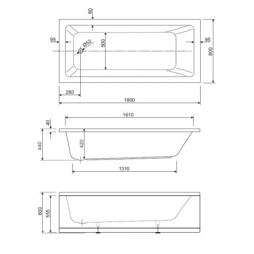 Акриловая ванна 180x80 см Cezares Plane solo mini PLANE SOLO MINI-180-80-42-W37