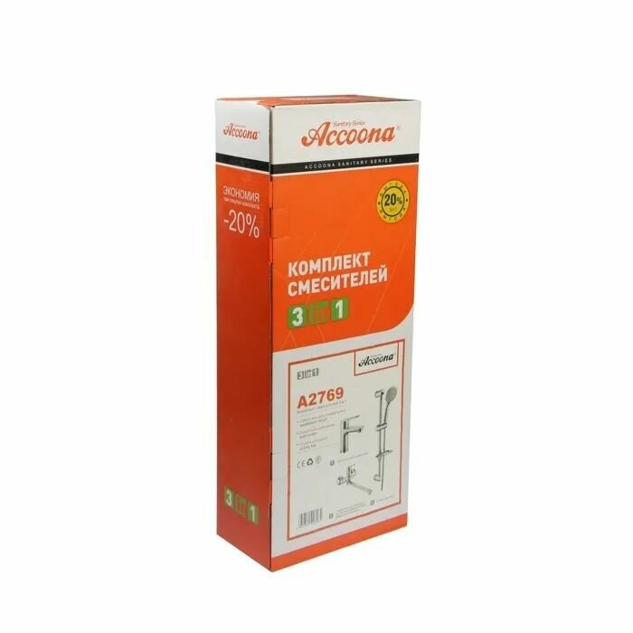 Набор смесителей 3 в 1 (для ванны, для раковины, душевая стойка) Accoona A2769, латунь